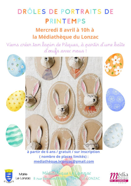 Venez créer un lapin de Pâques, à partir d’une boîte d’œufs à la Médiathèque.