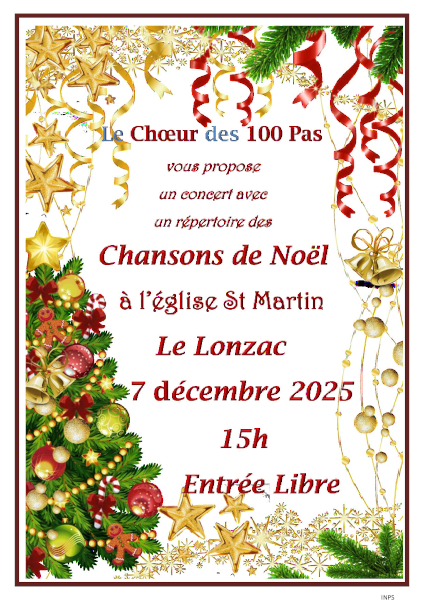 LE CHOEUR LES 100 PAS VOUS OFFRE UN CONCERT LE 7 DÉCEMBRE À L’ÉGLISE Le 07 décembre 2025 à partir de 15h00 Musique/ASSOCIATIONS Mis à jour le vendredi 24 octobre 2025
