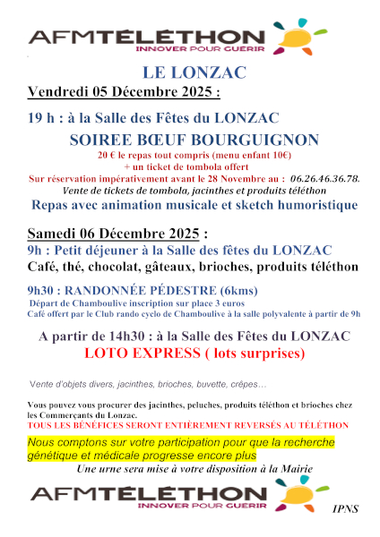 SAMEDI 6 DÉCEMBRE : RANDONNÉE PÉDESTRE ET LOTO AU PROFIT DU TÉLÉTHON